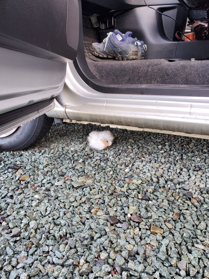 I searched everywhere for him while I did my camp chores and was beginning to think he must have decided to abandon me for a new life at my friend’s house! Finally, I spotted him – the trauma of the journey followed by the rough and inconsiderate way I’d swivelled the pilot’s seat, meant he’d spent the night hiding under the van!!!