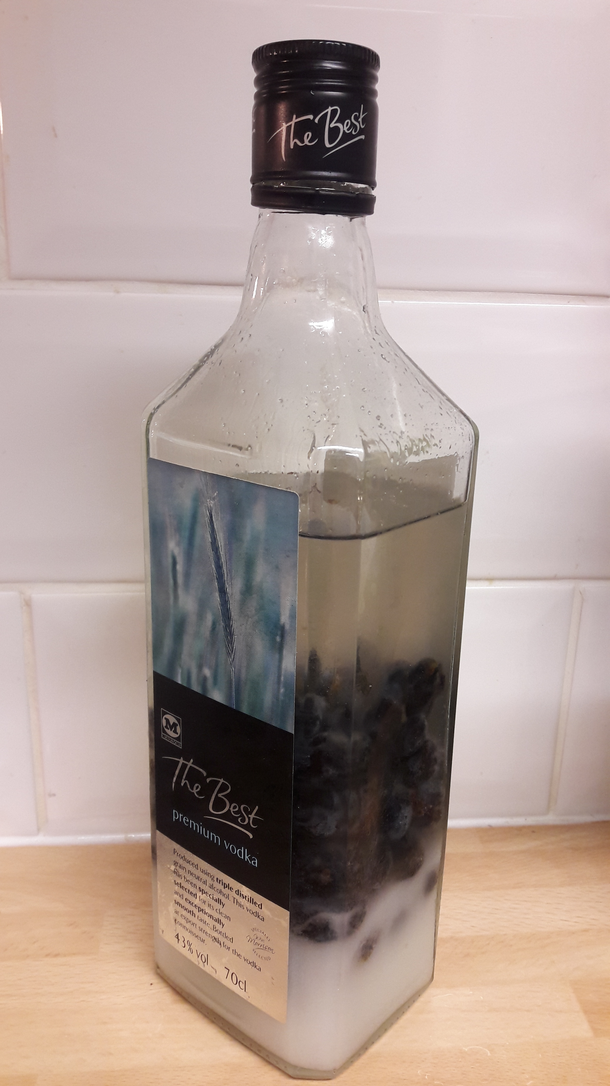 - Put the damsons in a bottle with 170g white sugar, 340ml vodka and 3 cloves.