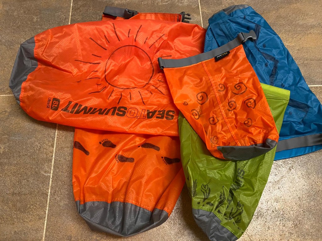 Dry bags are great – little water tight bags that you can used to both organise your stuff in your backpack and to keep it safe and dry. I have these ones from sea to summit in a variety of sizes: