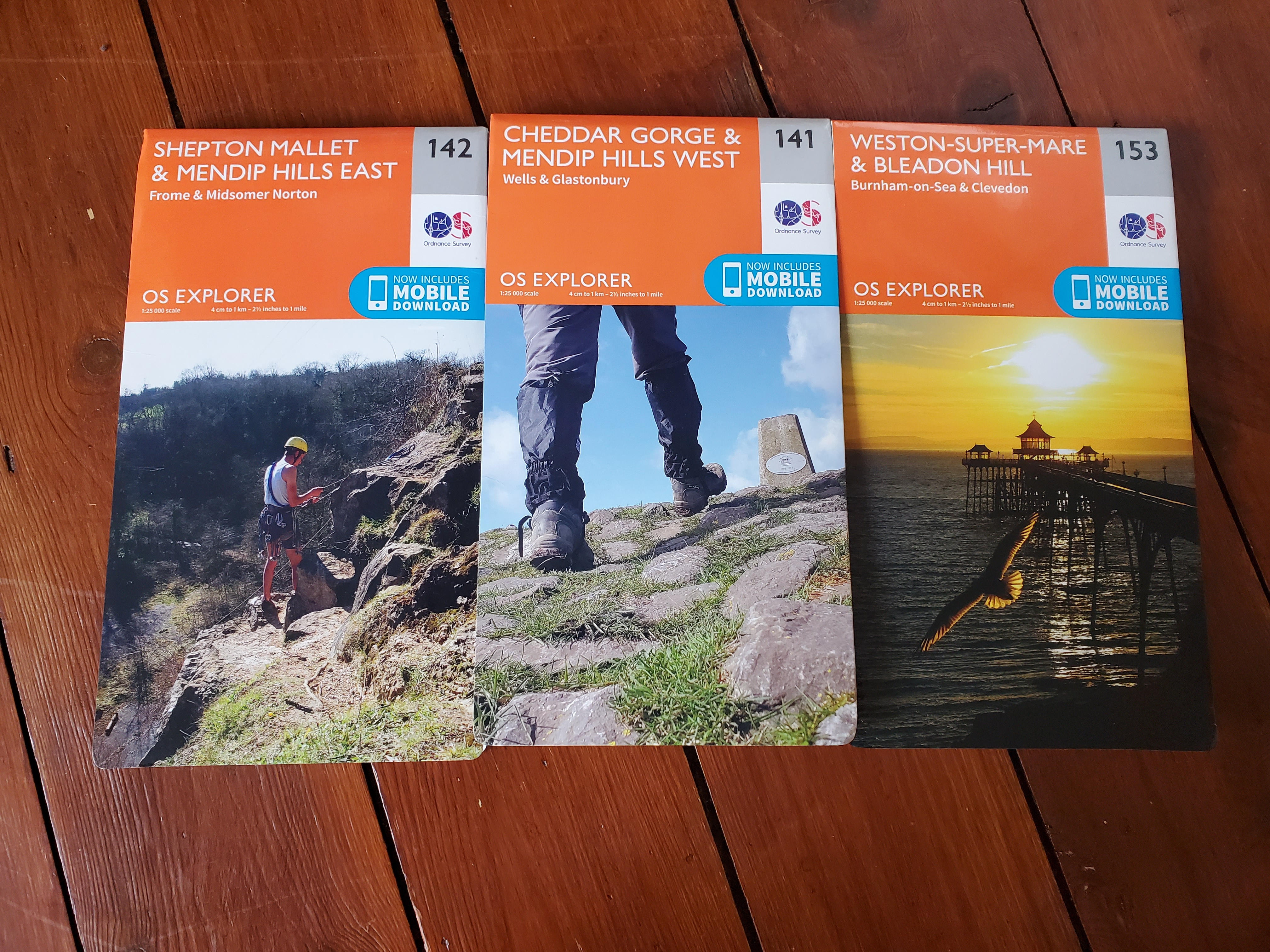 We took paper copies of the OS maps 142, 141 & 153. Although the route is way marked with blue arrows, they aren’t reliable enough to be able to find your way without a map. It’s also worth noting that although our maps were new, there were some points where the route had been altered, or an alternative provided, which wasn’t on our map. The OS app was helpful in these circumstances.