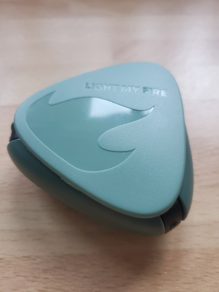 It’s the size that fits into the palm of my hand. I worked out that the black bits on the corners were little stoppers which opened. I read that it said ‘light my fire’ on it… but I could think what it could have to do with fires. I was stumped.