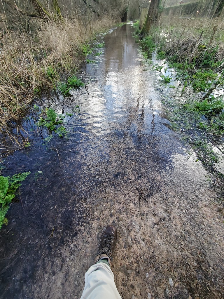 It was so deep I had to walk on tip toes to avoid the water over topping my boots…but do you know, even with the cracks & worn soles, my toes were toasty & dry. Grateful to my good old faithful walking boots!