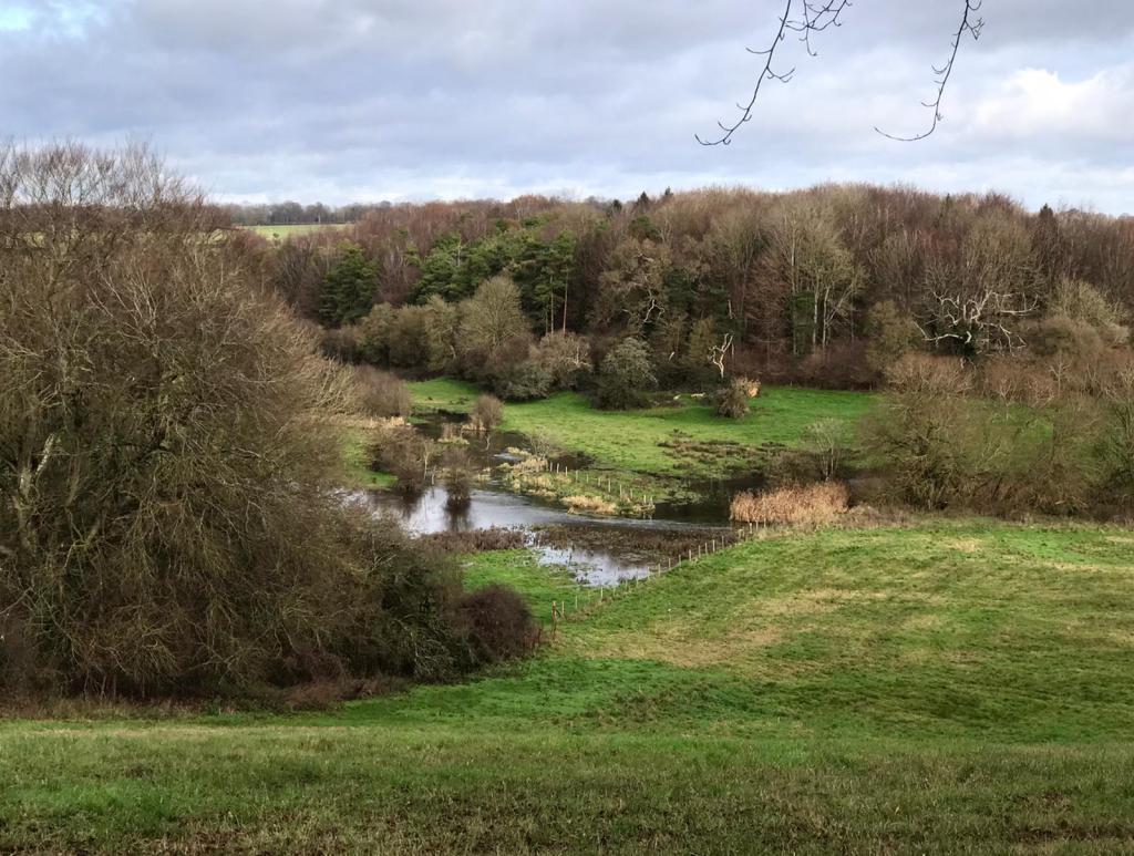 Where the path meets the road we walked away from the river, but could look down into the valley of one of the tributaries. This river flows out of the big lake we saw at Northington Grange on our last walk and joins the main river to the west of Alresford.