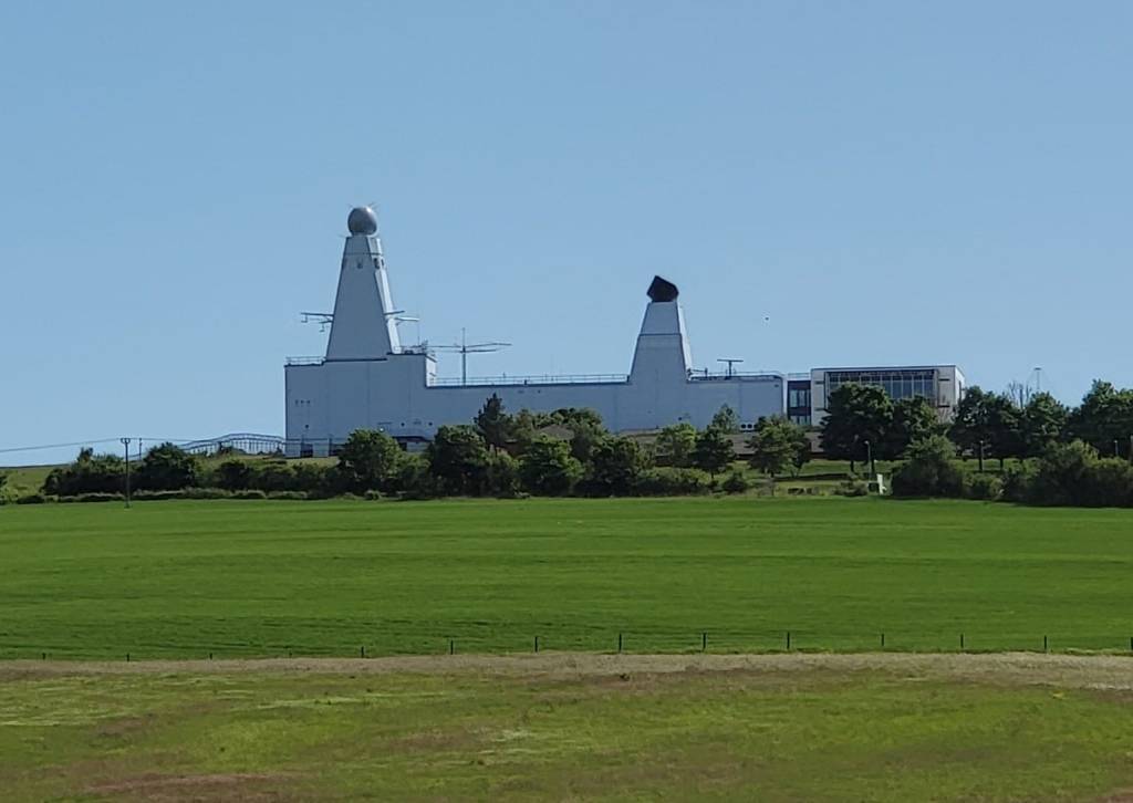 We followed the Pilgrims’ Trail to keep off the main road. Here we got some better views of a curious place that looks like a ship built on the land! It is the Maritime Integration and Support Centre (MISC), a naval research centre.