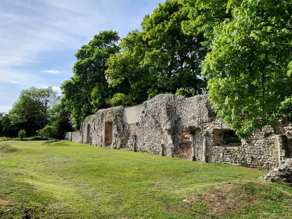 We also spotted on the map a footpath leading to Southwick Priory, which we’d not been able to see from the road because of that big wall! We added quite a few more steps to our route by following the track to see the ruins so we thought we’d better take a picture of it!