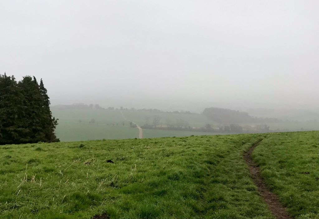 It was then uphill all the way back to Beaconhill Beeches. We had hoped to be rewarded with a view, but the clouds had come down and the rain was starting.